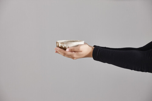 Male Hand Holding Wooden scoop on white background