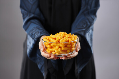يد تحمل أطعمة متنوعة