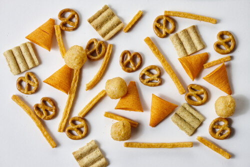 وجبات خفيفه متنوعة علي خلفية خلفية بيضاء