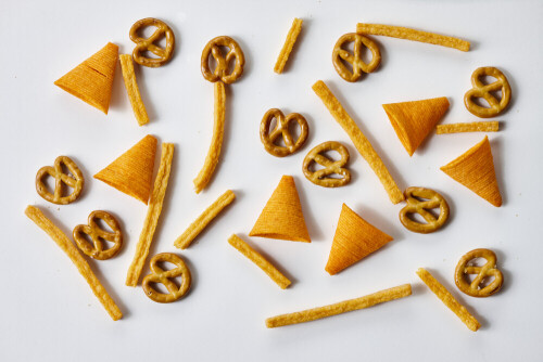 وجبات خفيفه متنوعة علي خلفية خلفية بيضاء