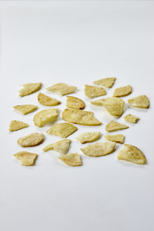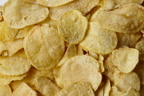 وجبات خفيفة من رقائق البطاطس الشيبس على خلفية بيضاء