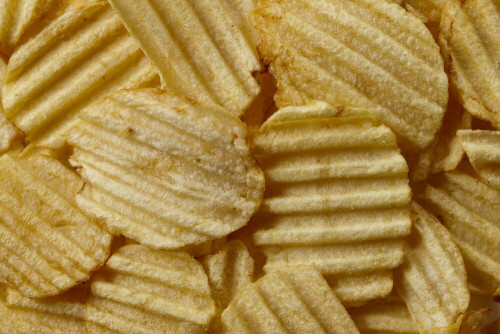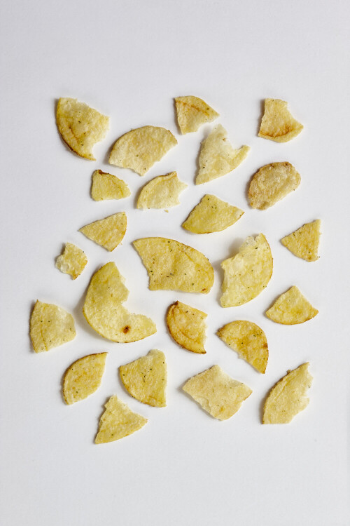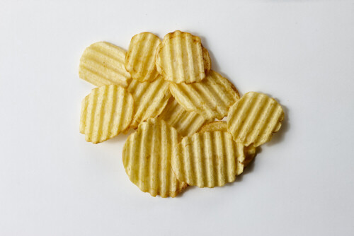 وجبات خفيفة من رقائق البطاطس الشيبس على خلفية بيضاء