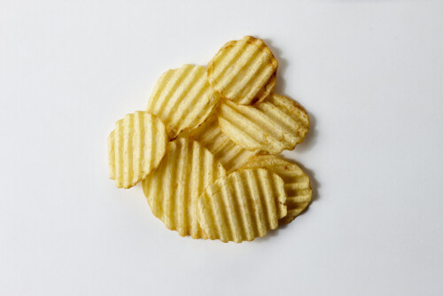 وجبات خفيفة من رقائق البطاطس الشيبس على خلفية بيضاء