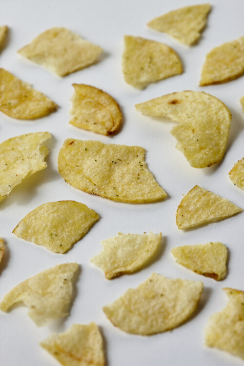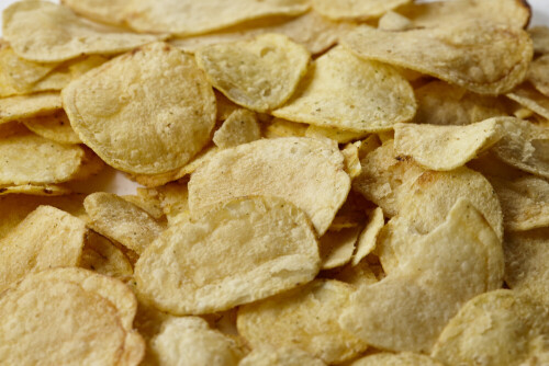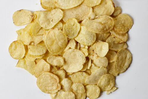 وجبات خفيفة من رقائق البطاطس الشيبس على خلفية بيضاء