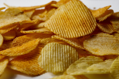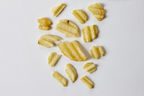 وجبات خفيفة من رقائق البطاطس الشيبس على خلفية بيضاء