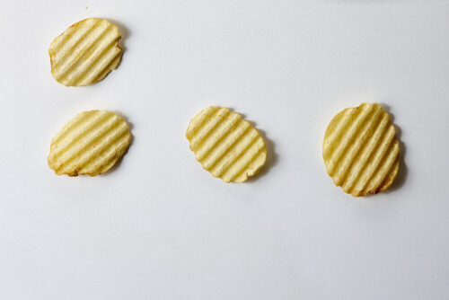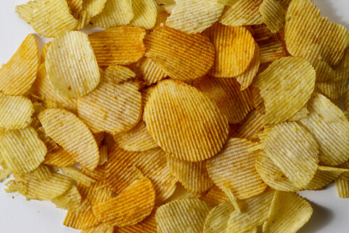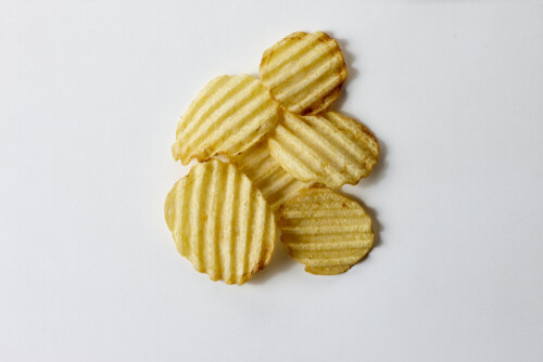 وجبات خفيفة من رقائق البطاطس الشيبس على خلفية بيضاء
