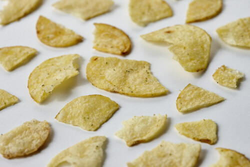 وجبات خفيفة من رقائق البطاطس الشيبس على خلفية بيضاء