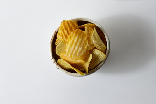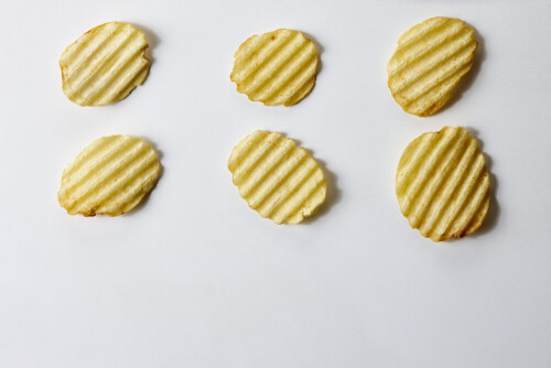 وجبات خفيفة من رقائق البطاطس الشيبس على خلفية بيضاء