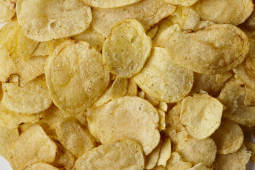 وجبات خفيفة من رقائق البطاطس الشيبس على خلفية بيضاء