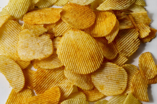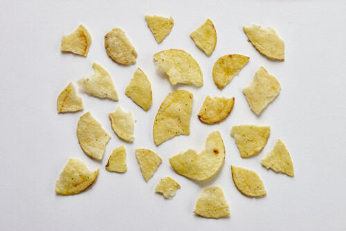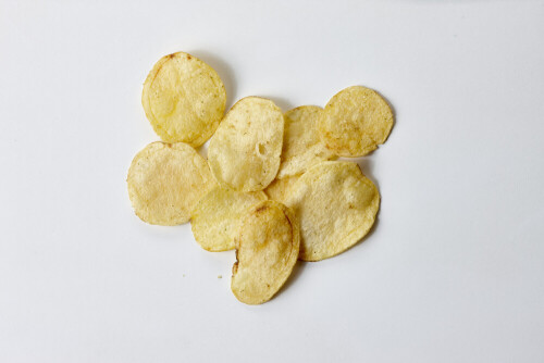 وجبات خفيفة من رقائق البطاطس الشيبس على خلفية بيضاء