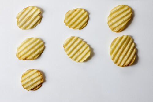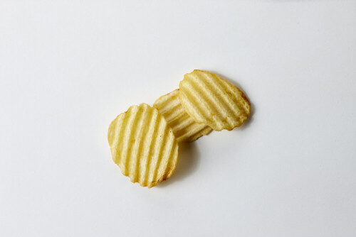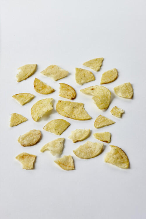 وجبات خفيفة من رقائق البطاطس الشيبس على خلفية بيضاء