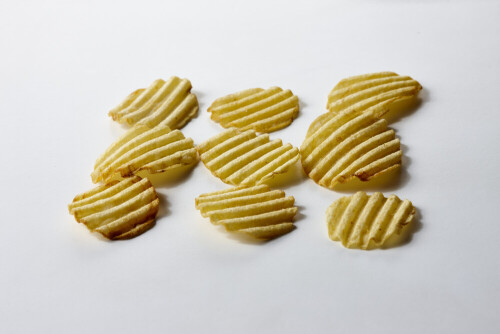 وجبات خفيفة من رقائق البطاطس الشيبس على خلفية بيضاء
