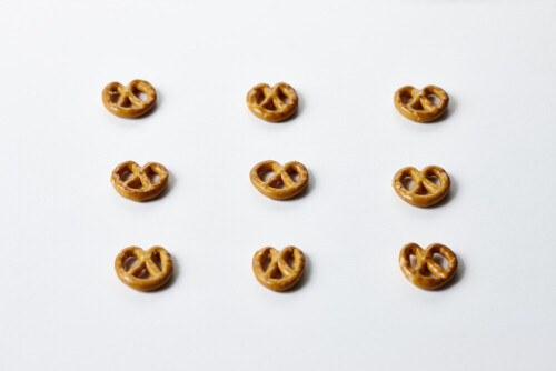 وجبات خفيفة من البريتزل على خلفية بيضاء