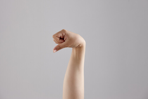 امرأة تشير بيديها بلغة الإشارات المختلفة