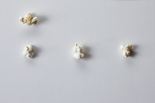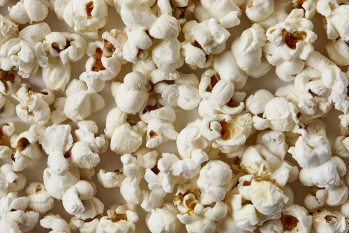 A bowl full of popcorn on a yellow background