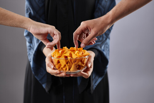Hands holding assorted food