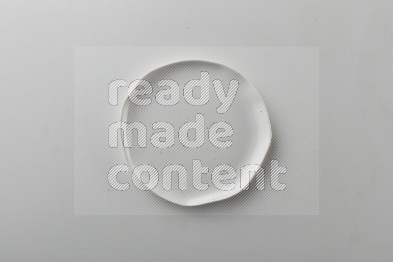 Top-view shot of an irregular white plate on white background