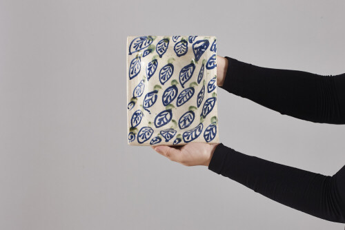 pottery Plate placed on a wooden tray