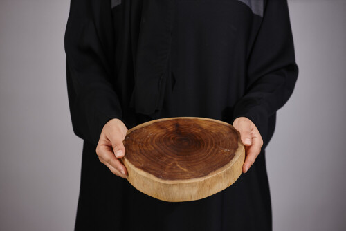 multi colored plate placed on a wooden oval cutting board